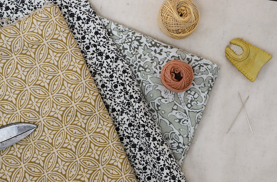 Cotton or linen fabric cut into squares (any size, any number, but plan on only as many as you think you can finish). We are particular to voile or linen, or scraps that mean something to you. But also: using what you have on hand is wonderful. Fat quarters are ideal.